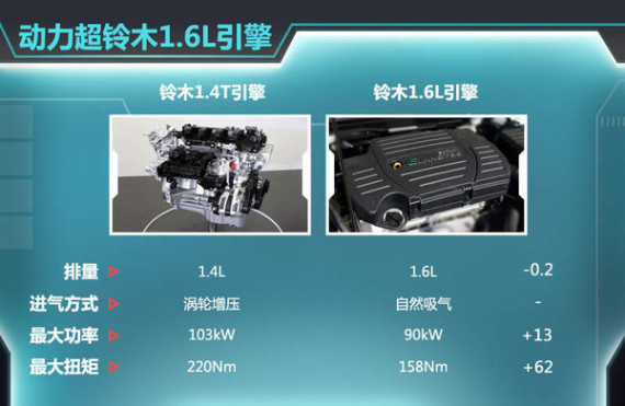 目前铃木旗下锋驭、启悦等车型搭载的是1.6L自然吸气发动机,最大功率90kW,最大扭矩158Nm,通过与铃木最新的1.4T涡轮增压发动机进行动力对比可以发现,1.4T增压发动机实现了最大功率和最大扭矩的大幅超越。相信1.4T小排量增压发动机会在铃木旗下车型中得到普及,在排量降低的同时可以获得更为强劲的动力输出,并且也符合当下对于环保的要求。