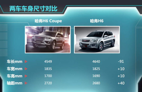 哈弗H6 Coupe/哈弗H6:尺寸对比