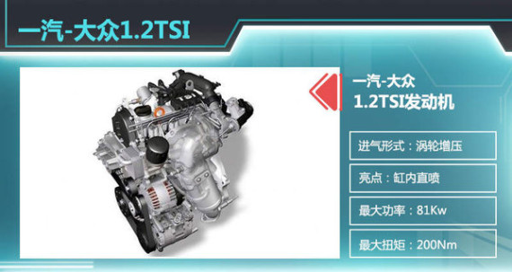 1.2TSI发动机是大众最新研发的EA211系列小排量增压引擎,在未来正式投入生产后将率先在高尔夫7和新速腾上进行匹配。对此一汽-大众内部之情人士向网通社表示:目前上市的高尔夫7 1.2TSI车型所采用的发动机是我们向上海大众所采购的,到7月份1.2TSI发动机投产后,我们将开始搭载一汽-大众自己制造的发动机,另外新速腾也将推出1.2TSI车型。根据一汽-大众所公布的数据显示,该款小排量发动机最大功率81kW,最大扭矩则为200Nm。