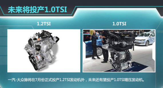 大众的EA211发动机是国内生产的首款欧5标准的发动机,结合了更多先进的降低油耗和排放的技术,其代表着大众汽车未来动力总成技术方向。目前EA211系列发动机中,已实现国产的有1.4L、1.6L自然吸气以及1.4T涡轮增压三款引擎。而根据一汽-大众关于未来EA211系列发动机的产能规划,除即将全面投产的1.2TSI发动机外,排量更小的1.0TSI发动机也或将随后引入国内生产。