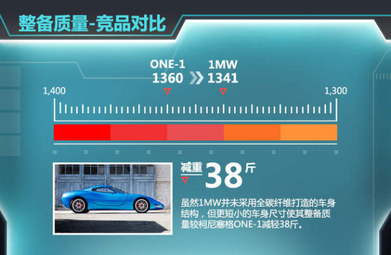 1MW在动力总成中搭载了一套回电速度更快的轻量化电池组,该设计在保证续航里程的前提下,进而减低前轴重量,使整车的重量配比更为合理,为前悬挂系统减轻负荷,以便使这款竞争柯尼塞格ONE:1的车型具有更为高效的推重比。