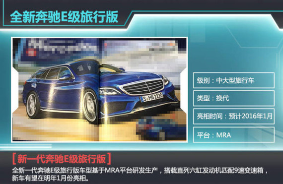 旅行版车型英文里称为“wagon”,这类车型通常以轿车为基础并将后备箱设计成与车顶齐平,后备箱空间更大更灵活。近日,海外媒体获得一组全新奔驰E级旅行版的假想图。奔驰E级即将推出换代车型,而E级旅行版有望明年一月正式亮相。新一代E级旅行版出自奔驰MRA平台,将搭载一款排量在2.2L-3.5L之间的六缸发动机,匹配9速变速箱。