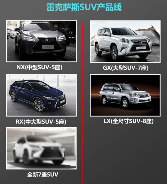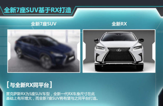 在NX推出之前,雷克萨斯SUV产品序列中,共有三款车型,分别是RX、GX和LX,其中RX和GX两车车身尺寸实际上相差并不明显,长度差距110mm、轴距相差50mm,。雷克萨斯在全新一代RX车身尺寸上进行调整,RX车身长度加长120mm、轴距增加了50mm,与现款GX保持一致。值得一提的是,全新7座SUV将有望基于全新RX打造,并且采用相同平台生产。