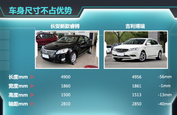 对于中级车而言,用户对其车内驾乘空间已经有相当程度的要求,拥有出色的车身尺寸将有利于车内空间优化进而提升市场竞争力。作为改款车型,新款睿骋仍将延续现款车型的车身尺寸数据,长宽高分别达到4900/ 1860/ 1500mm,轴距达到2810mm。与同级的吉利博瑞对比来看,新车车身尺寸数据并具备明显优势。