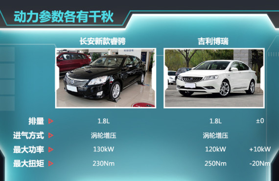 动力方面,2015款长安睿骋继续搭载2.0L和1.8T两款发动机,其中2.0L发动机最大功率116kW,峰值扭矩200Nm,另一款1.8T发动机最大功率130kW,峰值扭矩230Nm。传动方面,与发动机匹配的是6速手动和6速手自一体变速箱。对比来看,睿骋搭载的1.8T在动力参数方面与吉利博瑞搭载的同排量发动机各有千秋,均表现出不错的动力性能。