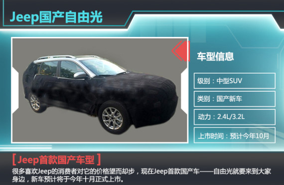 去年,广汽集团与克莱斯勒共同发布了合资项目发展战略。根据规划:到2016年Jeep将有三款车型国产后上市,其中包括今年将会上市的自由光,明年还会有国产的自由侠与另一款代号511的SUV车型与大家见面。到2018年Jeep在中国将全面覆盖从紧凑级到全尺寸豪华SUV的细分市场。