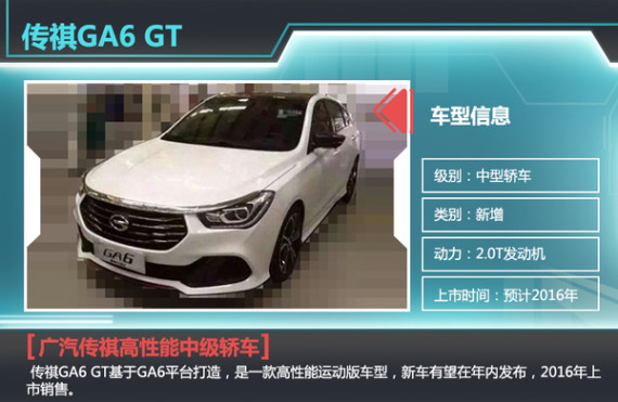 作为自主品牌大家庭的“新人”,广汽传祺的销量一直保持着很高的增长势头,2014年广汽传祺取得了11.68万辆的销售业绩,涨幅高达41%。产品方面,广汽传祺目前已经涵盖了轿车和SUV在内的七款车型,在轿车方面包括紧凑级车型GA3、GA3S、GA5,还有一款在去年上市的中型车GA6。即将于年内正式发布的广汽传祺GA6 GT基于GA6车型平台打造,定位高性能中型轿车,该车的推出也将使广汽传祺的产品布局更加丰富。