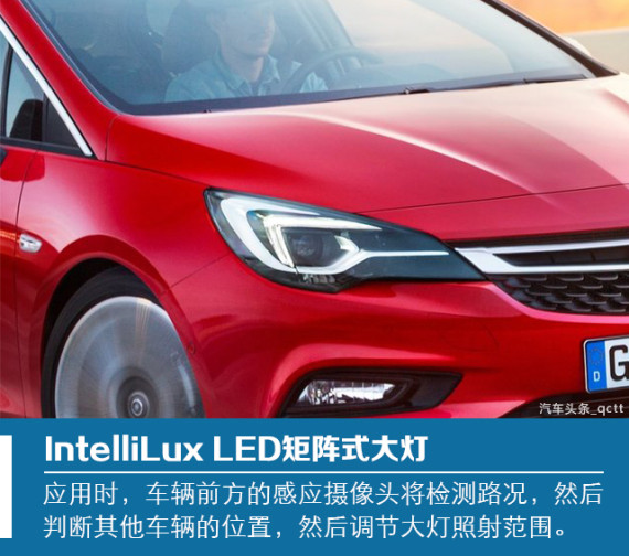 据欧宝相关技术人员介绍,新车上的前灯采用LED光源,每个单独的大灯内集成八个LED光源区。夜间行驶时,新车电脑通过车前的感应摄像头监测交通状况,然后分配灯组内八个LED分区的工作状态,调整车灯照射角度。