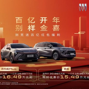 2月26日,上汽通用汽车别克宣布开启“百亿大红包”开年福利,以实打实的诚意优惠、真诚透明的购车价格让利消费者:即日起至2026年3月31日,购买昂科威Plus、君越 (配置|询价)可享受1,000元抵6,000元定金膨胀。定金膨胀后,昂科威Plus直降5,000元,终端限时优惠价16.49万元起;君越直降5,000元,终端限时优惠价15.49万元起。