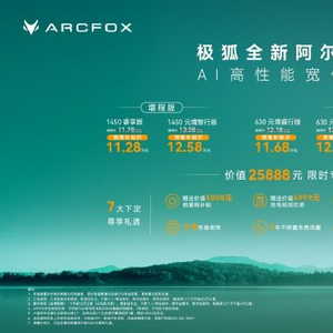 据了解,即日起下定全新阿尔法S5,用户可享受5000元购置税专项补贴、价值4999元家用充电桩抵扣券(安装服务以官方授权服务商为准)、包含高级舒适头枕和全景天窗遮阳帘在内的小狐同学见面礼、整车5年/12万公里质保、三电终身质保、3年免费不限流量和终身免费OTA权益等7重限时尊享礼遇,总价值至高25888元。