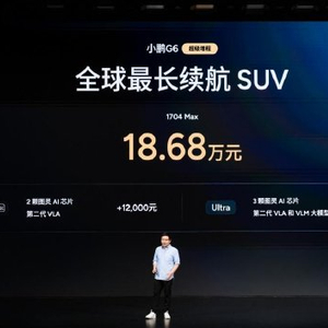 3月6日,小鹏汽车举行小鹏G6超级增程上市发布会,小鹏G6超级增程1704 Max车型官方指导价为18.68万元,同时可选装两个智能升级包,加购12,000元升级为Ultra SE版本、加购20,000元升级为Ultra版本。同时官方也公布了上市期间的限时购车权益。