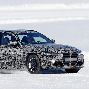 从照片中可以看到,M3休旅车雪地测试给试驾车手带来的欢乐溢于言表。这款高性能休旅车整车都覆盖着迷彩伪装,但仍然可以看出其与M3轿车版车型共享设计元素。两款车在车头部分都安装了大型的进气格栅,但格栅造型的开口幅度稍有差异。此外,M3休旅车还保留了轿车版上的扩口挡泥板和四角排气管。