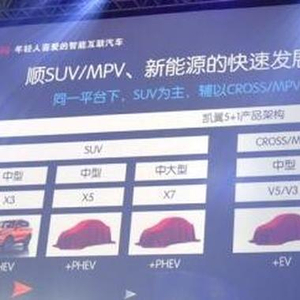 日前,凯翼官方发布了接下来的新产品以及战略布局,在未来,凯翼将推出5+1的产品组合,推出例如凯翼X5、X7、V5以及C5等车型,全面布局SUV、MPV、轿车以及新能源的市场。