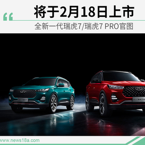 瑞虎7 (配置|询价)是奇瑞汽车旗下一款紧凑型SUV,于2016年正式进入市场,2019年11月,全新概念SUV新一代瑞虎7 Teaser car正式亮相。12月23日,网通社从奇瑞汽车官方获得了,全新一代瑞虎7/瑞虎7 PRO的官图,新车基于全新设计理念打造,提供1.5T和1.6T两种动力,其中1.5T车型命名为全新一代瑞虎7,1.6T车型命名为全新一代瑞虎7 PRO。另据透露,全新一代瑞虎7将于2月18日上市。