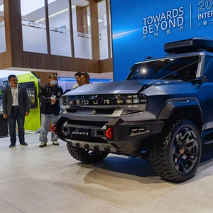 2023上海车展开幕前夕,新浪汽车前方探馆团队拍摄到一组捷途T-3 的图片。新车是捷途品牌旗下全新的越野概念车,定位为中大型SUV,采用非承载式车身结构,整体设计硬派。新车将于18日正式亮相。