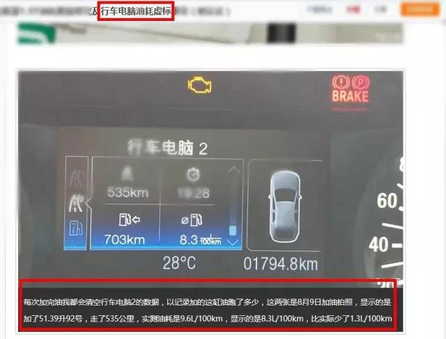 现实中往往有一些车厂耍小聪明,在行车电脑中采取虚标的手段,显示一个低于实际的平均油耗,让大家以为车很省油。比如下面的小伙伴遇到的情况。