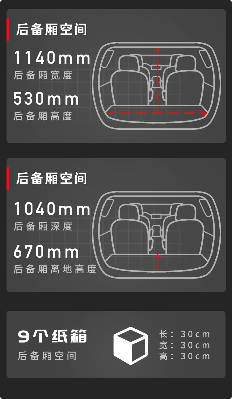 好在后备厢基本空间是ok的,在实测当中,它能够塞下9个我们实测用的标准纸箱,在同级车中表现较好。而且它的的后排座椅靠背支持4/6比例放倒,载物空间的灵活度有保障,只可惜这个配置是高配车型的专属。