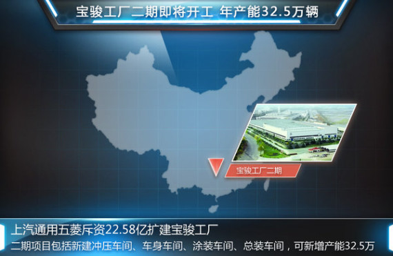 位于广西柳州汽车城内的宝骏基地一期总投资80亿元,具备年产40万辆的生产能力。目前宝骏旗下630、730、乐驰等车型均在该工厂生产。根据宝骏规划未来每年将推出一款新车型,宝骏工厂也将继续扩张。据悉,上汽通用五菱将斥资22.58元开展宝骏工厂二期项目,项目总投资为22.58亿,包括新建冲压车间、车身车间、涂装车间、总装车间,可新增产能32.5万辆。