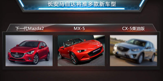 据长安马自达汽车销售分公司执行副总经理况锦文介绍,为了进一步扩大产品阵容,下一代Mazda2和明星跑车MX-5,以及CX-5的柴油版车型的引进也正在筹划中。