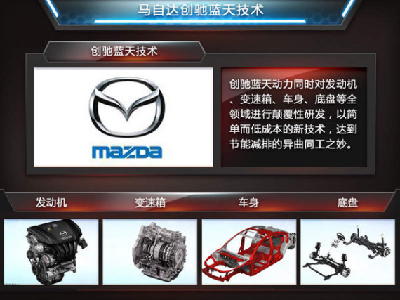 马自达是全球汽车业一个专注技术创新的“小型巨人”。早在 40年前,靠着 “变不能为可能”的挑战精神,马自达开发出没有活塞和连杆的“转子发动机”。成为全球汽车史上的传奇。创驰蓝天动力秉承这种精神,在欧美汽车纷纷追捧涡轮增压和双离合变速箱等新技术的喧嚣中,独辟蹊径,同时对发动机、变速箱、车身、底盘等全领域进行了颠覆性的探索和研发,以简单而低成本的新技术,成功挑战了涡轮增压等复杂而昂贵的技术,达到节能减排的异曲同工之妙。