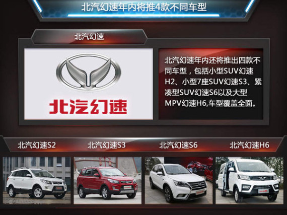 对于2014北汽幻速喜人的销量,官方对2015全年销量预计提高到了30万,上升幅度达300%以上。随着经销商网络布局的展开,借此拓展契机,北汽幻速在2015年还将推出4款全新车型。包括小型SUV幻速S2、小型7座SUV幻速S3、紧凑型SUV幻速S6以及大型MPV幻速H6,车型覆盖全面,丰富了产品内容。