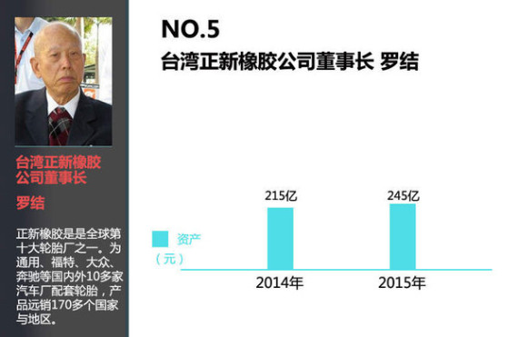 罗结,有北魏大臣之称,台湾正新橡胶公司董事长,目前总资产为245亿,较2014年上涨了14%。
