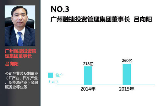 现年53岁吕向阳是广州融捷投资管理集团董事长。融捷集团资产规模和年营业额均超过700亿元人民币,员工约16万人,产业涉及制造业(IT产业、汽车产业、新能源产业)、矿产业、金属冶炼业、资本运作业、金融服务业,事业分布世界众多国家和地区,是一个多元化经营的跨国企业。