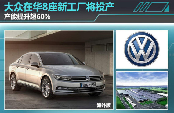 目前大众品牌的产能已超过300万辆,而要实现500万辆需提升60%以上的产能。上海大众已有产能的工厂包括:安亭三座工厂82万辆;南京工厂30万辆;仪征工厂30万辆;宁波工厂30万辆。一汽大众长春两座工厂66万辆;成都工厂目前45万辆;佛山工厂目前30万辆。目前也已投产的8家工厂产能之和为313万辆。