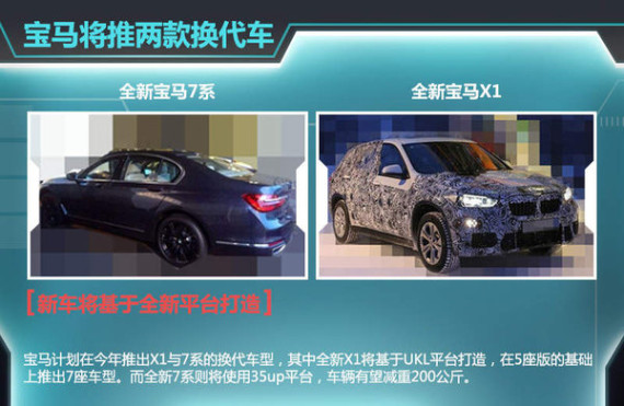 在推出新产品的同时,宝马集团在今年还将推出多款换代车型,这就包括了宝马X1与7系轿车。据了解,全新一代宝马X1将基于UKL前驱平台打造,并将搭载一款全新的1.5L三缸涡轮增压发动机,新平台将突出车型轻量化、节能高效的优势。宝马考虑到国内消费者对空间的需求以及UKL平台模块化的灵活性,全新X1将推出加长轴距的7座车型。