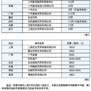 其次的影响要素是车企的地域分布。由于生活成本等原因,在北京、上海、广州等一线城市的车企,一线员工收入平均比长春、武汉、重庆等二、三线城市收入高30%左右。一名上海大众的员工告诉记者,上海大众的薪酬体系中有一个“75分位”原则,即员工收入高于当地75%居民的平均收入,在上海总部,员工年薪能达到14万元,在长沙分公司,年薪为10万元左右。
