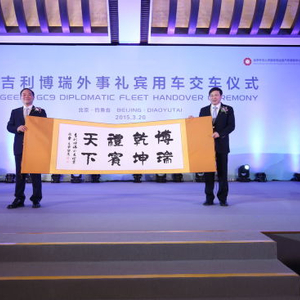 新浪汽车讯 3月20日,北京 今天下午,首批20辆吉利博瑞外事礼宾用车交付仪式在北京钓鱼台国宾馆举行,外交部部长助理钱洪山和吉利控股集团董事长李书福作为双方代表完成了交付仪式。比利时驻华大使马怀宇,乌拉圭驻华大使罗萨里奥·波特利,白俄罗斯驻华公使伊格尔,英国驻华公使魏林等外交使节也参加了交付仪式。