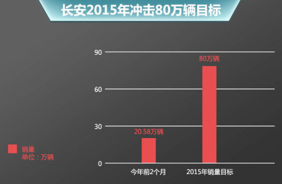 得益于逸动、长安CS35、CS75等车型的良好销量表现,今年1-2月份,长安汽车在乘用车市场共计销售20.58万辆,同比增长超过七成,在自主品牌的领军地位得到稳固和加强。同时,在整个乘用车市场中,长安汽车销售量仅低于前三大巨头(南北大众、上海通用),排名进入前四。按照长安汽车规划,今年将力争实现80万辆的销量目标。