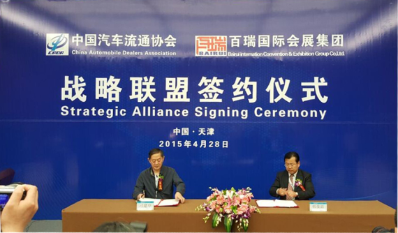 为响应国发[2015]15号文件:“国务院关于进一步促进展览业改革发展若干意见”的出台,中国汽车流通协会与百瑞国际会展集团有限公司,于2015年4月28日在天津签署战略联盟协议。作为中国汽车流通领域具有重要地位的中国汽车流通协会与在我国会展业具有重大影响力和雄厚业务能力的百瑞国际会展集团的强强联合,必将对中国汽车流通行业更好更快的发展起到积极的推动作用,也开启了会展龙头企业与行业权威协会合作的新模式,必将为我国会展业的发展注入新的活力。