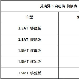 6月1日起,奇瑞艾瑞泽3自动挡车型将全面到店,并在全国范围内开始上市发售。艾瑞泽3自动挡共有两款车型,售价7.09~7.49万元。同时,艾瑞泽3手动挡车型的售价也有所调整,详情请见下表。