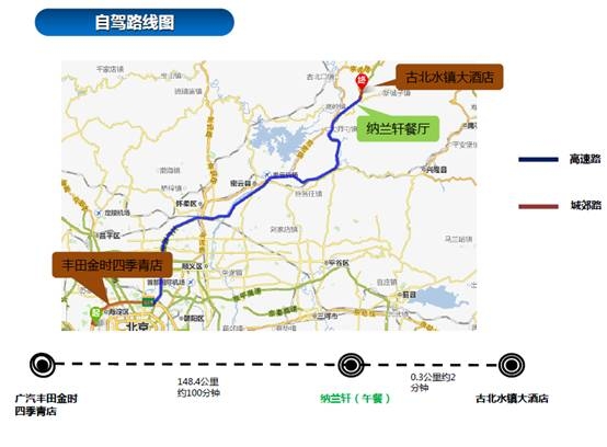 凯美瑞带来的极致驾乘体验让两个小时的自驾过程丝毫不显得漫长。不知不觉已到正午,而我们也抵达了目的地密云古北水镇。