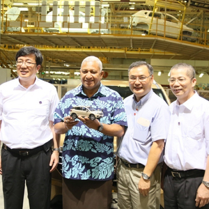 随后,吴总向姆拜尼马拉马总理赠送了传祺GS4车模并合影留念。姆拜尼马拉马总理对制作精良的车模爱不释手,并希望享誉中东、南美的传祺,也能尽快进入斐济市场,让斐济人民能够体验到传祺这样高品质的中国产品。