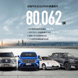 6月8日,长城汽车股份有限公司(股票代码:601633.SH,02333.HK;以下简称长城汽车)发布2022年5月产销数据。今年5月,长城汽车共销售新车80,062辆,环比增长48.9%;其中海外销售12,317辆,环比增长59.3%。