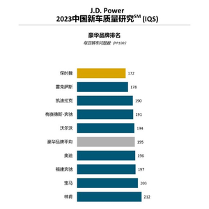 保时捷(172个PP100)荣获豪华品牌新车质量第一。雷克萨斯(178个P100)和凯迪拉克(190个PP100)分别排名豪华品牌第二和第三。