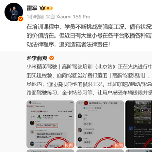今日,小米汽车副总裁李肖爽通过微博发布严正声明,针对近期网络上广泛传播的 “小米汽车高阶驾驶培训发生致命车祸” 传闻予以回应,明确指出相关内容为恶意造谣。
