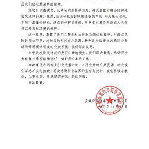 对于此次测试造成的天门山场地损失,我们深表歉意,承诺将全力修复并承担赔偿责任,做好所有善后工作。