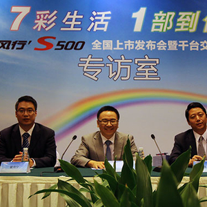 新浪汽车讯 11月8日下午,风行S500在国内正式上市。发布会后,东风柳州汽车有限公司总经理助理、乘用车销售公司总经理姚利文(图中)与东风柳州汽车有限公司乘用车技术中心副主任、风行S500首席设计师翟克宁(图左)一道针对MPV的发展前景、新产品规划、新能源车型的研发等问题接受了媒体群访,以下为群访速记(顺序稍有调整):