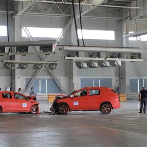 据介绍,该整车碰撞实验可满足5吨以下车辆、时速120公里以内的所有碰撞测试,实验室配备的两车对碰牵引系统,用于整车碰撞安全性能的检测研究,为改善车辆被动安全性能提供数据支持。