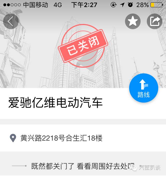 打开地图,当你搜索“爱驰亿维电动汽车”,你就来到了黄兴路2218号合生汇18楼。