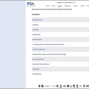 此外,FCA的管理团队同样还将展示“合规计划对于地区产品的影响”。此项展示或将提供道奇和克莱斯勒品牌在美国未来发展的信息。最后,此次会议还将进行“商业计划金融概述”的展示,或将由公司首席财务官Richard Palmer进行。