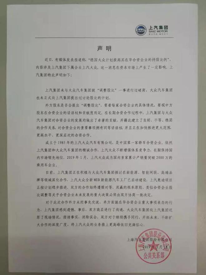 而随后,上汽集团表示“在长期合资合作过程中,上汽集团与大众汽车集团对合资企业的发展均做出了卓著的贡献,并籍此建立了良好、平等、稳固的合作关系,对合资企业的重要事项拥有同等话语权,并且正在加快推进更大范围、更高水平、更深层次的合资合作。”其实意图也非常明显。