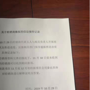 在会议记录里,第二条写明,“后续款项会在11月底12月初,待新项目公司拿出具体实施方案后,对经销商进行解释说明及答复。”