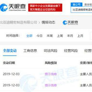 12月3日,据天眼查数据显示,比亚迪精密制造有限公司发生工商信息变更,王传福卸任该公司董事长一职,由比亚迪联合创始人王念强接任。此外,新增比亚迪财务总监周亚琳为董事。