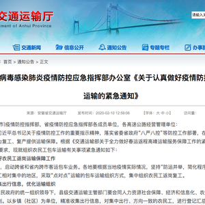 2月10日,新浪汽车从安徽省交通运输厅获悉,为认真贯彻习近平总书记关于疫情防控工作的重要指示精神,落实省委省政府“八严八控”等防控工作部署,在筑牢“一圈一带一网”防控体系的基础上,为复工、复产提供运输保障。根据《交通运输部关于全力做好春运返程高峰运输服务保障工作的紧急通知》(交运明电[2020]50号)等要求,安徽省交通运输厅就组织农民工包车运输有关事项做出紧急通知。