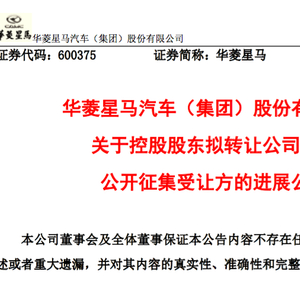 6月13日,华菱星马汽车(集团)股份有限公司(以下简称华菱星马)发布公告称,星马集团函告华菱星马,星马集团组织的专业评审人员对意向受让方吉利商用车集团进行了综合评审,认为吉利商用车集团符合本次公开征集转让受让方的条件,确定吉利商用车集团为本次公开征集转让受让方。