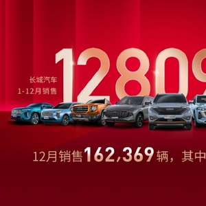 2022年1月6日,长城汽车发布2021年12月产销数据,销售新车162,369辆,同比增长8.2%,环比增长32.5%。2021年,长城汽车销售新车1,280,993辆,同比增长15.2%,海外销售142,793辆,同比增长103.7%,销售占比达11.1%。2021年12月,长城汽车新能源车销售22,354辆,1-12月累计销售136,953辆,在总体销量中占比达10.7%,皆创历史新高。2021年,长城汽车取得连续六年突破百万销量成就。